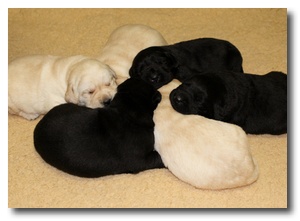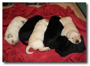 1 femmina gialla , 1 femmina nera , 2 maschi gialli ,2 maschi neri