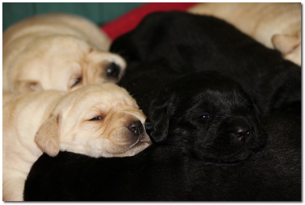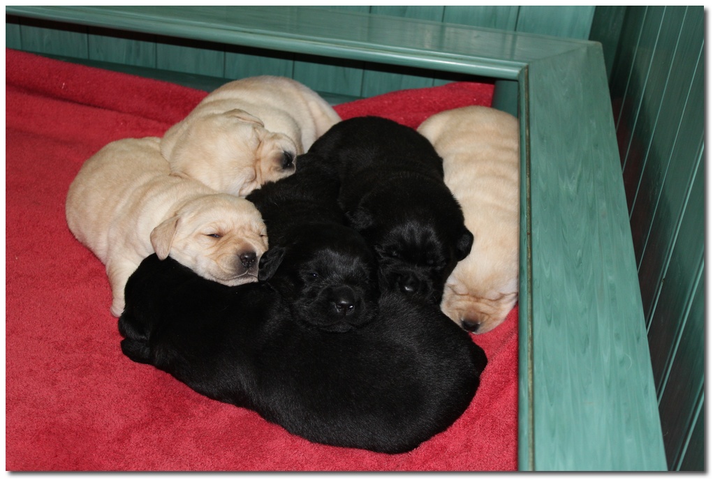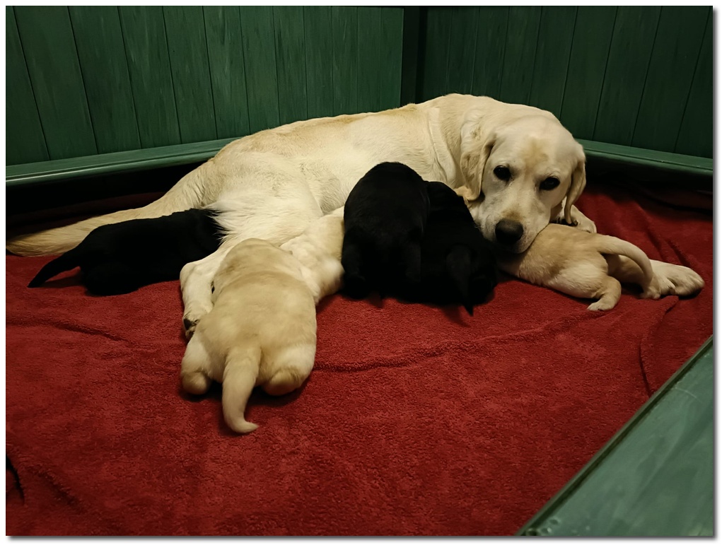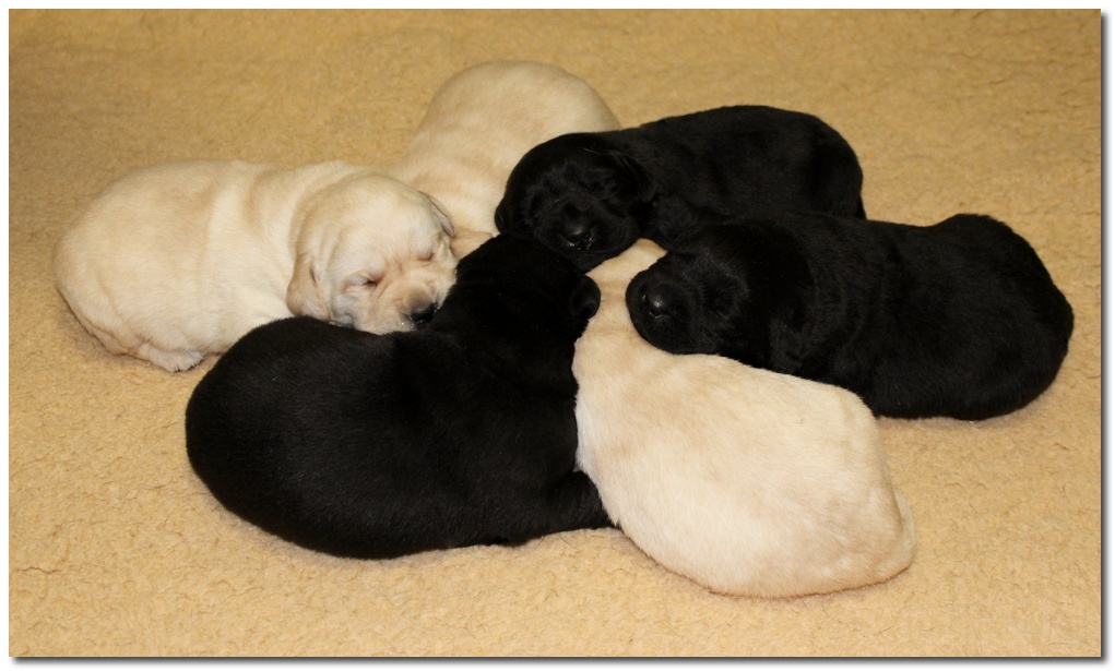 1 femmina gialla , 1 femmina nera , 2 maschi gialli ,2 maschi neri